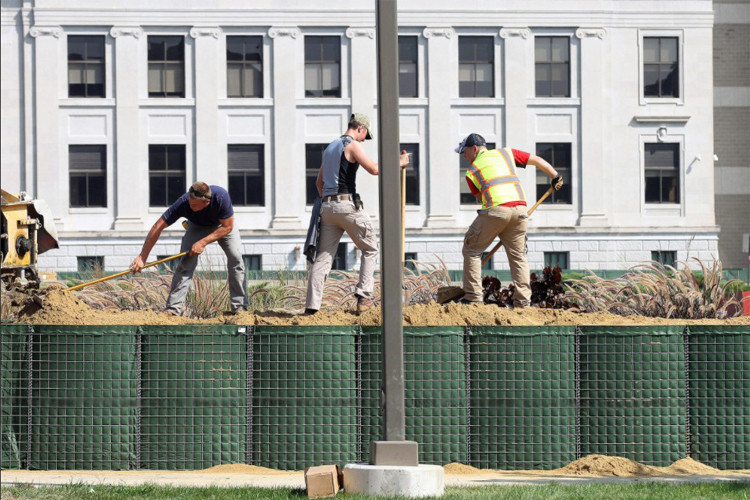 2. Polypropylengeotextilzwischenlage. Schnelle Installation und steife Struktur stellt vorübergehenden oder semipermanenten Graben oder Sperre gegen Explosionen oder Handfeuerwaffen sicher. Sie kann an jede mögliche Länge zusammen gewöhnt sein und kann für zusätzliche Höhe gestapelt werden.